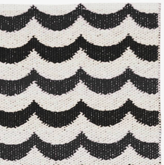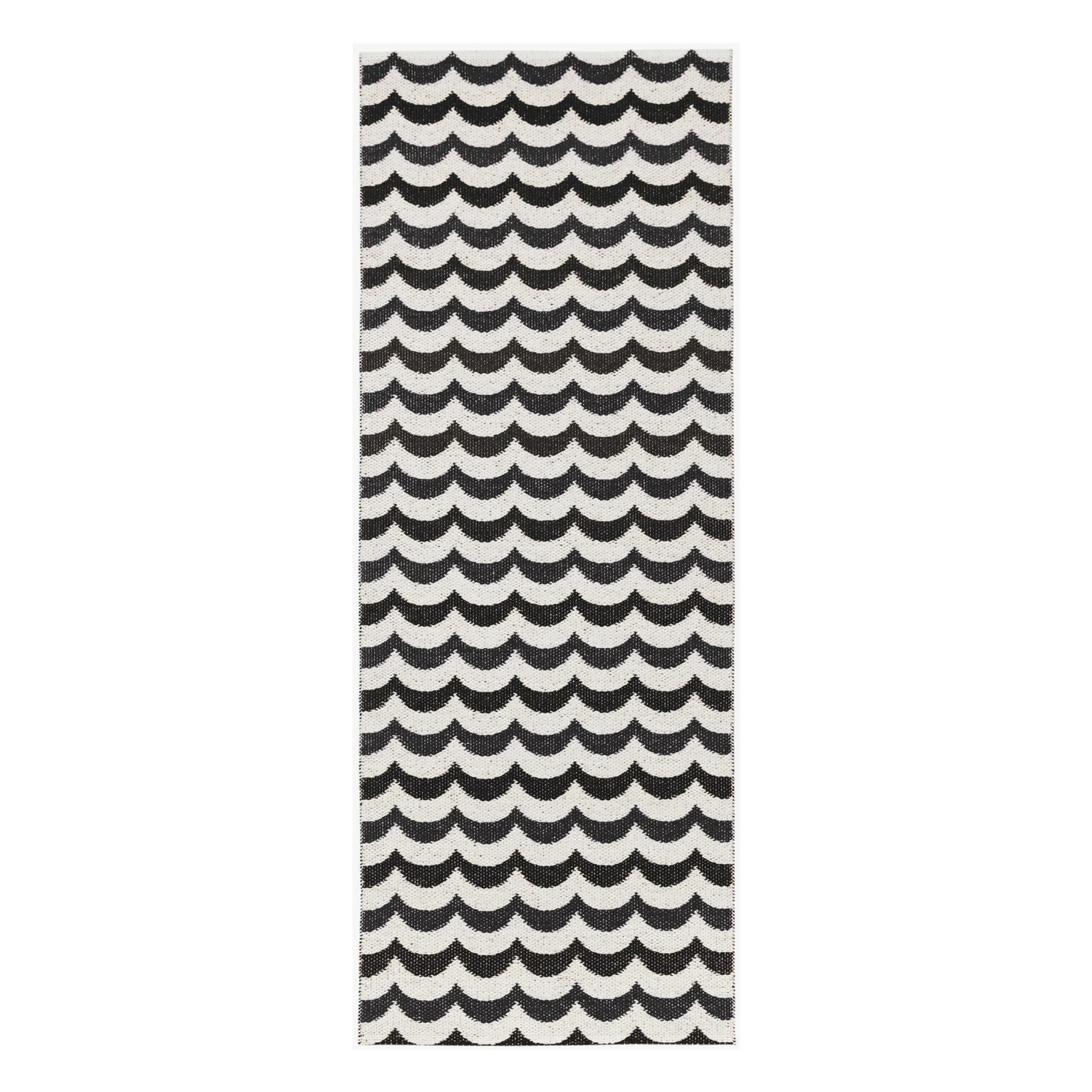 Het Ocean vloerkleed beluga is van het Zweedse merk Brita Zweden. Deze plastic uitvoering heeft een eenvoudig geometrisch zwart-wit patroon, geïnspireerd door golven in de zee. Mooi in de keuken of in de gang! Verkrijgbaar in verschillende maten.